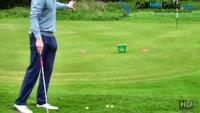 So if I need to be consistently hitting the golf ball at the same distance, I need to be consistently striking it in that area. So as I setup to my golf ball now, it gives me this big red target right behind the back of the golf ball. And as I line up to the ball, I get my red target lined up behind the ball, I am going to try and bring that club down and strike it out at the middle. Now the closer to the middle, the more the ball will fly its full distance and the more consistently around the middle, the more consistently the ball will go its distance and I can then measure that distance. Often golfers say to me, I am not very consistent hitting it the right distance, it's because they are not striking it in the right place, it’s not that you are hitting one shot hard or one shot softer, it’s just you are not hitting it in the same spot each time.
