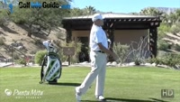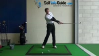 When we are hitting a driver we want to hit this on the way up or certainly with a shallower angle of attack. So the first thing is to change the ball position, I am going to position the ball well forwards in my stance, my center of gravity now is way behind that cane, that club, and actually it needs to stay there during the swing. So from a good address position I turn back to my right side, center of gravity now from my sternum almost by my right foot. I then drive my lower half forwards, but because I am hanging back with my upper half, my center of gravity still stays back behind the shaft on the ground. Therefore, my center of gravity is back behind the ball, the club will bottom out here and start to rise up. If I have the wrong ball position and the wrong body position for a driver I am going to find the driver is coming down into the back of the ball, gets under the ball, hits the crown of the leading edge, pops the ball up in the air and actually lose my upwards angle, my angle of attack is too steep, I hit the ball off the crown of the club, ball pops up in the air. So improving the center of gravity and moving that ball position and center of gravity around together to help improve your angle of attack, is a great way of avoiding hitting the top of the golf club and skying the ball into the air with your driver.