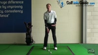 So if we understand that the angle of attack as we come into the golf ball with the driver is one of the primary reasons why sometimes we get onto the ball and pop it up and sky it off the top of the gold club, we can understand now how the center of gravity of our body in relation to the golf ball can help us change the angle of attack. So if I was to take an iron swing, I have got a club laid down here so you can see where the ball position is going to be. If I have got an iron, I am going to play the ball around about the center of my stance for this experiment here. I am going to position myself nicely, I am going to hold the golf ball just off my sternum and I can see that the center of gravity hangs down pretty close to the golf ball. And then during my swing I get to the top, I drive my body weight forwards and now hang the club down from my sternum and now I am in front of the cane on the ground here by a couple of inches, therefore my center of gravity has moved left in front of the golf ball encouraging me to have a hit down, because generally speaking the lowest part of your swing should be where the center of gravity is where the middle of your body is, so I have moved my body weight into my left side, I am going to hit the ball then I am going to carry on down hitting into the turf. And that works quite nicely for an iron, but actually we need to be quite specifically different when we are hitting a driver.