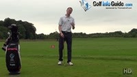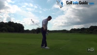 So the first consideration would be ball position. With a short iron, you could go ahead and place the ball directly in your feet – directly in the center of your feet. That would be for a pitching wedge, 9-iron, maybe even an 8. But actually for a short hybrid golf club, I just like to position the ball slightly more forward just to stop the club coming crashing down into the back of the ball. Would like it to be a little bit of a softer divot shape. So as I go ahead and hit the ball here, I'm going to have the ball slightly ahead of center, and just try and sweep it into the sky. And you can see as I've hit that, that I haven't actually taken a divot, just brushed the tops of the leaves of the grass. But actually if I had done that with a short iron, I'd normally be taking a divot a roundabout sort of two, three inches in – sort of after the ball, so I'd hit the ball, then I'd hit the turf, because my swing would be on a descending angle of attack. With my hybrid golf club, it's a shallow angle of attack, doesn't really take a divot too much.