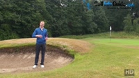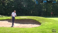 So, it's angle the shoulders, angle the feet, loads of firmness in that right foot and then a good digging action into the back of the slope, blast the ball out nice and high, don't expect it to release when it comes down unto the green. And you can practice that next time you're on the practice ground on the uphill slope of a nice steep face greenside bunker.