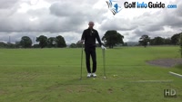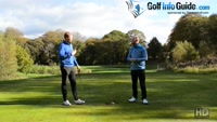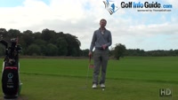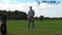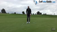 So, a wide stance, a big grip and standing a long way from the ball is powerful but it's not really that controlled for a chip. So, we go narrow with the feet around about six or eight inches apart in the heels. We grip down at the base of the golf club which naturally gives us a lot more control and less power and then we stand a lot closer to the golf ball.