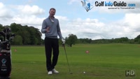 And when I set up I’m thinking knees, feet, hips and shoulders, everything pointing way left and that’s where I’m looking and if I made my normal swing the ball would stay left. But actually I’m not going to make my…my normal set up there I’m going to turn the club a little bit open with the club face, I’m going to aim the club slightly more to the right. I can then make my normal swing and as long as I keep the club face pointing to the right of my intended swing path, the ball will move from left to right in the air and hopefully make its way back on to the target line and look like a proper fade. So I point my body down the left hand side, the face is slightly open to my target line, sorry to my set up line and the ball will move back towards the intended target line.