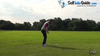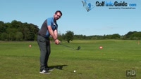 Now to perform a sweeping motion, what I want to be seeing is getting myself set up, getting my chest pretty much over the ball, taking it back and then as I come through impact what I want to be seeing is the shaft angle actually matching as close as possible to what this alignment stick is doing here as well. If I actually move my hands back at this I'll be actually hitting hoop on the ball adding loft to maybe catch in a little bit far. If I move a long way ahead, I'm going to be striking the ball first and then the turf and hitting down. So to execute that sweeping motion, you need to be trying to get that club shaft pretty much level and pointing up at your swing center as you hit. Now what that is going to do, it's going to create a condition where you're hitting the ball and then just maybe the turf afterwards, it's almost a bruising of the turf after the ball.